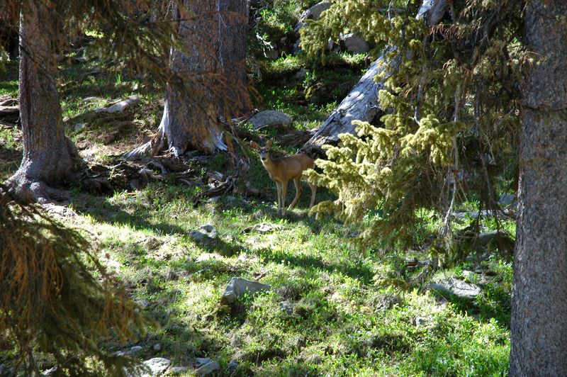 Weminuche Wilderness Area Colorado 4-5-luglio-2010 -- What a nice female deer!!! Where's the baby? Hiding into Arctostaphylos uva-ursi????